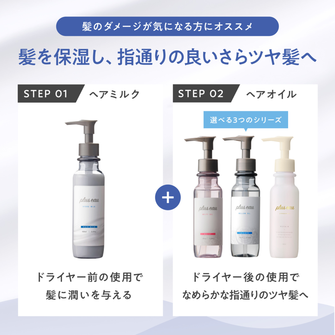 プリュスオー ヘアオイルラインとのセット使いでより理想の仕上がりへ。(オイルラインは香り付きです)