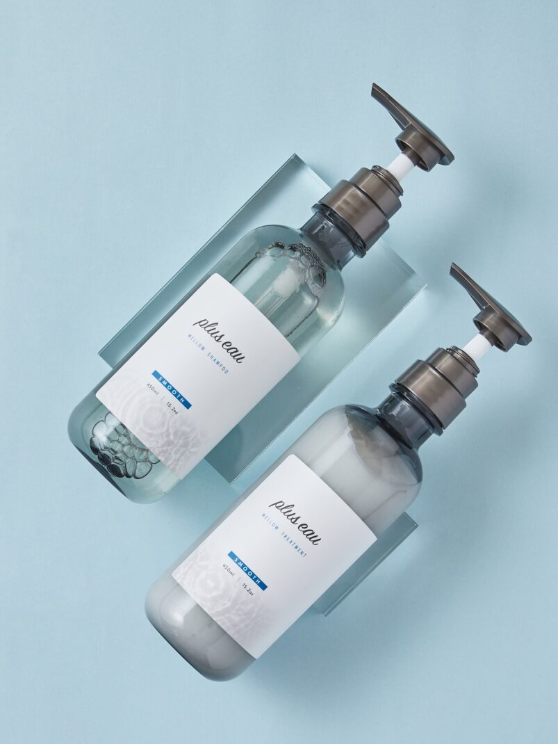 プリュスオーシリーズでは香りを統一(一部、無香料)しており、ヘアマスクやブースター導入液、エマルジョントリートメントなど、その他のアイテムと併用しやすい仕様になっています。